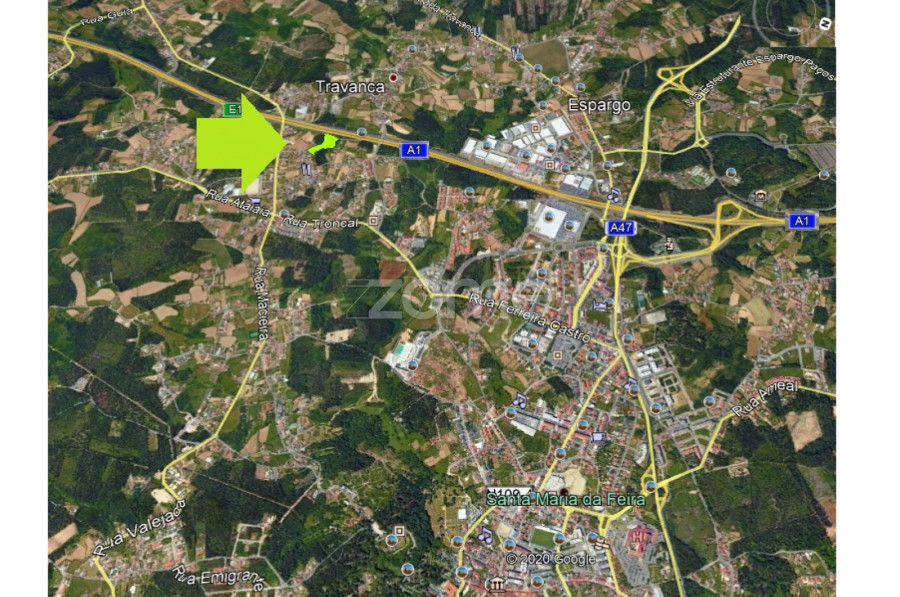 Terreno 9178m² frente para Autoestrada A1 Travanca Santa Maria Feira